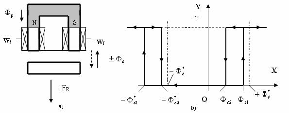 Functionarea unui asemenea electromagnet polarizat dobandeste calitǎti logice, si decurge cu memorarea ultimei stǎri, asa cum se poate urmǎri, examinand caracteristicile date in Fig. II-33a.