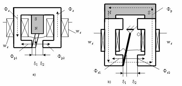 Fig. II-32: Electromagneti polarizati, a)-tip derivatie, b)-tip punte