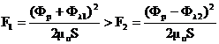 In absenta fluxurilor magnetice de lucru, fortele de atractie F1-0 si F2-0 sunt egale: