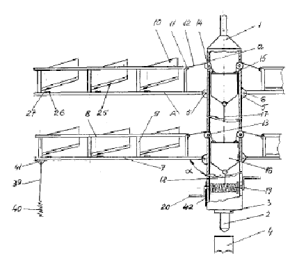 energie mecanica si/sau energie electrica si care este prevazuta cu niste pale batante, dispuse pe unul sau pe mai multe niveluri. Instalatia conform inventiei este alcatuita din niste pale (A) prinse de un arbore (1), gol la interior, central, cu
