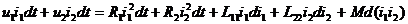 Insumand ultimele doua relatii si tinand seama ca L12 = L21 = M se obtine o relatie de bilant energetic pentru cele doua circuite in forma: