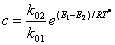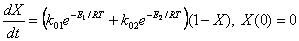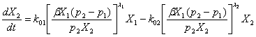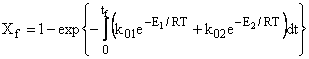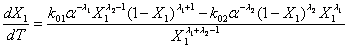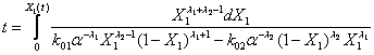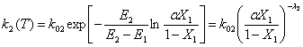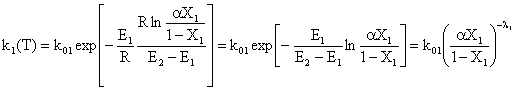 Pentru a obtine dependenta conversie-timp corespunzatoare evolutiei optime a temperaturii data de relatia (6.44), constantele de viteza se calculeaza cu ajutorul expresiilor: