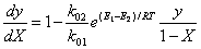 Notând cu X conversia reactantului A si y randamentul în produs P (y=Cp/CA0) ecuatiile de bilant: