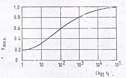 Fig. 6.7 Dependenta randamentului maxim de durata de reactie A B C (E1>E2)