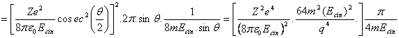 unde Ze este sarcina nucleului tinta, Ecin este energia cinetica a particulelor α, e este sarcina electrica elementara, ε0 este permitivitatea electrica a vidului, iar θ este unghiul de imprastiere.