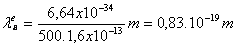 Comparand aceasta valoare cu cea a lungimii de unda de Broglie dedusa anterior se constata ca: