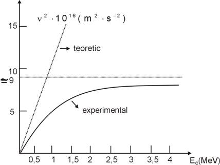 Īn experienta Bertozzi s-a determinat viteza electronilor accelerati īntr-o diferenta de potential cunoscuta, reprezentāndu-se grafic patratul vitezei īn functie de energia lor cinetica.(figura I.3).