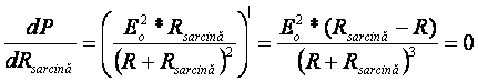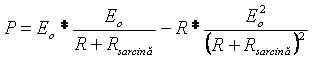 Valoarea maxima a puterii se obtine inlocuind in relatia (1.18) valoarea rezistentei de sarcina: