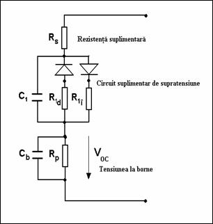 Supratensiunea este modelata de un circuit format dintr-un condensator si o rezistenta in paralel, iar acest circuit este inseriat cu Cb si Rp. Rezistenta in aceasta retea, R1, este modelata ca o rezistenta ce poate lua doua valori in functie de modul de lucru al baterie