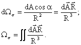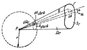 contur G dintr-un punct P exterior conturului. Unghiul solid se definește ca