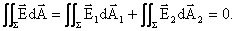 Acest flux rămâne constant chiar dacă liniile de forță intersectează suprafața de mai multe ori, deoarece fluxul lui E1 și E2 se anulează, fiind egale și de semne contrare.