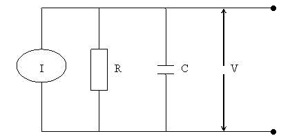 Aici, rezistenta R si capacitatea C reprezinta rezistenta si capacitatea intrinseca a anodului si a altor elemente care pot fi in circuitul de iesire ( cabluri etc.). Presupunand ca intrarea este lumina scintilatoare descrisa de o functie exponentiala, atunci curentul pe anoda va fi dat de: