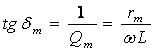 Conform relatiilor (3) si (4), expresia tangentei unghiului de pierderi este: