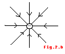 Am considerat pana acum cazul static al interactiunilor dintre sarcini.Daca vom mentine "fixata" sarcina care genereaza campul electric si vom lasa libera sarcina de proba, aceasta din urma se va misca pe anumite traiectorii.Aceste traiectorii constituie liniile campului electric, iar sensul lor care li se acorda a fost fixat prin conventie ca acela in care s-ar misca sarcina pozitiva egala cu unitatea.Deci linia de camp este linia care are vectorul E tangent in fiecare punct al ei.Din conventia aleasa rezulta imediat de ce liniile de camp ale sarcinilor electrice punctiforme sunt radiale, indreptate spre sarcina generatoare, daca este negativa, sau dirijate dinspre ea, cand are semnul pozitiv.(Fig.2 a si b).