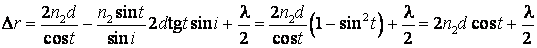 de interferenta pentru lumina reflectata cand diferenta de faza intre doua raze