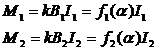 Sub actiunea curentilor I1 si I2 in cele doua bobine se creeaza momente de cupluri opuse si anume: