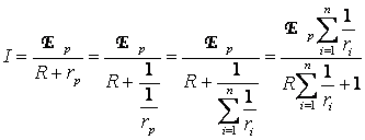 De aici se desprinde o regula legarea in paralel, anume ca sursele trebuie sa aiba curentii de scurt-circuit de valori cat mai diferite, in caz contrar tensiunea electromotoare echivalenta poate fi nula.