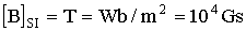 Unitatea de masura pentru inductia magnetica in SI este Tesla (sau Weber/m2, sau Gauss-ul):