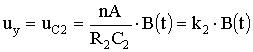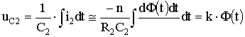 La placile de deflexie pe verticala se aplica tensiunea furnizata de circuitul integrator R2C2, cu R2 mult mai mare decat reactantele din circuitul secundar, deci: