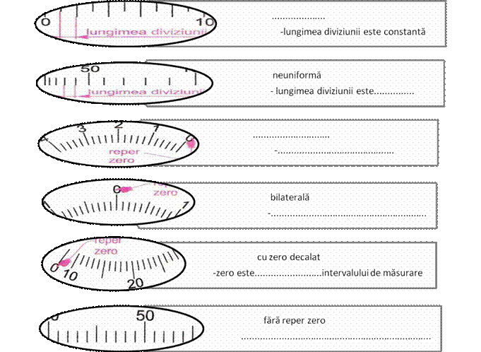 Se dau urmatoarele mijloace de masurare. Caracterizati scara gradata (tipul, indicatoarele, lungimea diviziunii, limite, domeniul de masurare,indice, felul citirii, dispozitivul de afisare).