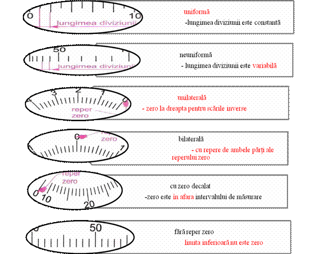 Se dau urmatoarele mijloace de masurare. Caracterizati scara gradata (tipul, indicatoarele, lungimea diviziunii, limite, domeniul de masurare, indice, felul citirii, dispozitivul de afisare).