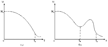 b) Materialele antiferomagnetice si ferimagnetice se caracterizeaza prin existenta a doua subretele magnetice, cu particule care au momente magnetice elementare spontane orientate antiparalel, egale pentru materialele antiferomagnetice si inegale pentru cele ferimagnetice. Ferimagnetismul este antiferomagnetism necompensat.