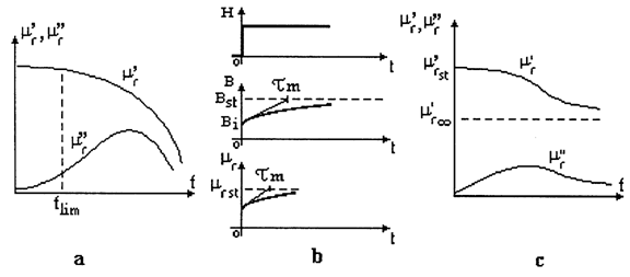 unde: Q si Q0 sunt factorii de calitate ai bobinei cu si fara miez ferimagnetic. Ca si la materialele dielectrice, tangenta unghiului de pierderi creste cu cresterea frecventei.