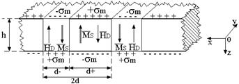 Expresia energiei de demagnetizare este o functie para în raport cu "d", fiind pozitiva pentru valori "d" si "h" apropiate : d > h si 0 d d/2. Energia de demagnetizare pentru : d 0 este superioara energiei de demagnetizare corespunzatoare valorii : d = 0, iar starea energetica stabila a structurii Kittel corespunde latimilor egale ale domeniilor cilindrice adiacente.