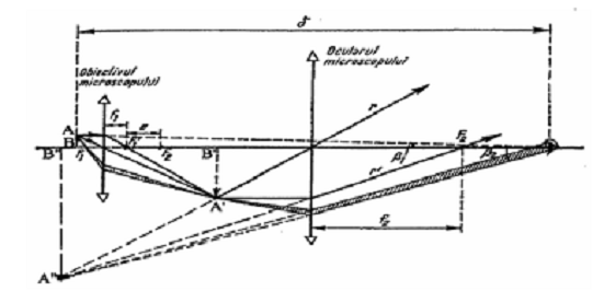 Datorita faptului ca imaginea y´1 se formeaza foarte aproape de focarul F2 al ocularului, ca si in cazul lupei, imaginea finala A´´B´´ poate fi privita fara efort de acomodare.