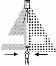 Cand se priveste LED-ul luminos, dupa cum se vede in figura din dreapta, mutati prisma catre dreapta orientand-o catre instrument GTS-700 . Cand priviti lumina intermitenta mutati prisma spre stanga. Pozitia de la mijlocul luminilor celor doua LED-uri este directia punctului de vizare.