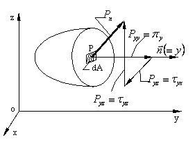 suprafata de asemenea perpendicular pe axa y; tensiunile(