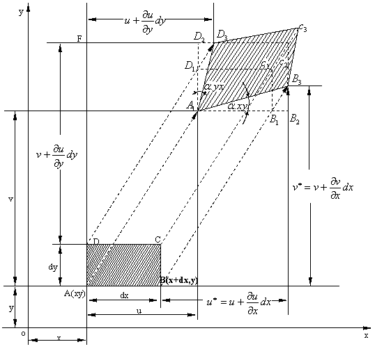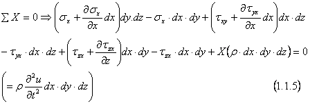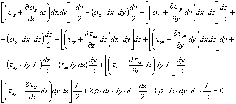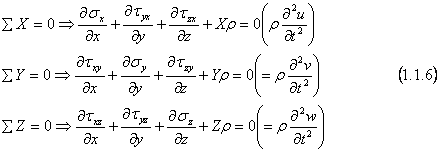 Vom presupune corpul dat in echilibru (static sau dinamic): atunci pentru fiecare paralelipiped elementar in parte trebuie sa fie satisfacute sase ecuatii de echilibru static: