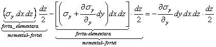 Vom observa ca unele momente vor fi infiniti mici de ordinul trei, iar altele de ordinul patru. De exemplu pentru tensiunile normale de pe cele doua fete laterale perpendiculare pe axa y, avem(v.fig.1.1.4)