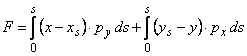 rezultanta fortelor interioare care actioneaza pe elementul de suprafata dA.
