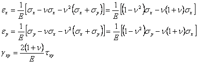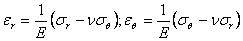 Legea lui Hooke are aceasi forma ca in coordonatele carteziene, se schimba numai notatia tensiunilor si deformatiilor, corespunzator noilor axe: