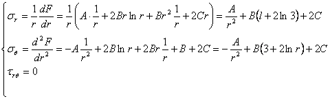 Se obtine asa numita " ecuatie diferentiala a deformatiilor" care contine o singura functie necunoscuta u(r). Ea este o ecuatie diferentiala de tip Euler care se rezolva in mod obisnuit facind schimbarea de variabila: