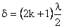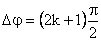 14) In cazul interferentei a doua fascicule coerente se obtin franje luminoase daca diferenta de drum optic δ si diferenta de faza a undelor ce interfera este: