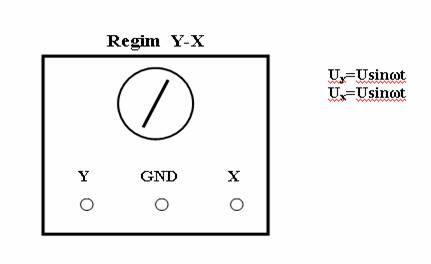 Daca tensiunile uy(t) si ux(t) au aceeasi lege de variatie, atunci regimul de lucru al osciloscopului se numeste regim y-x.