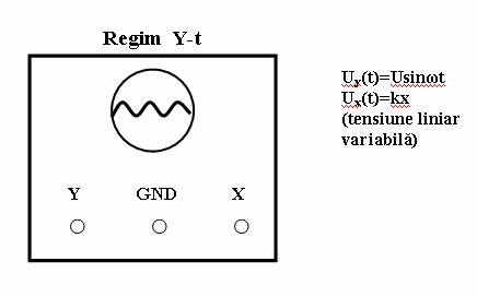 Daca tensiunea ux(t) este liniar variabila, atunci pe ecran va aparea dependenta tensiunii uy(t) in functie de timp. Acest regim de lucru se numeste regimul y-t.