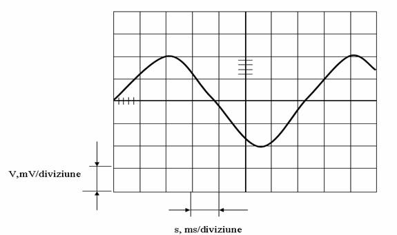 Un patrat are 5 diviziuni,iar axa X are 10 patrate, iar ava Y are 8. de aici se pot masura amplitudinile tensiunilor stiind cati volti sau milivolti sunt pe o diviziune. Se poate masura si frecventa citind de pe ecran cate diviziuni sunt intr-o perioada, stiind cate secunde sau milisecunde sunt pe o diviziune. Deci osciloscopul catodic poate fi folosit si ca aparat de masura, avand o precizie foarte mare.