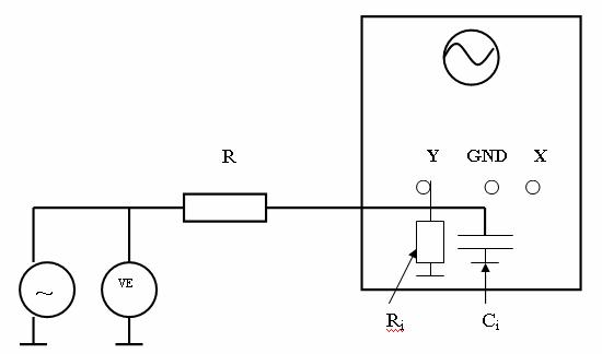 Pentru a masura rezistenta de intrare a osciloscopului avem montajul: