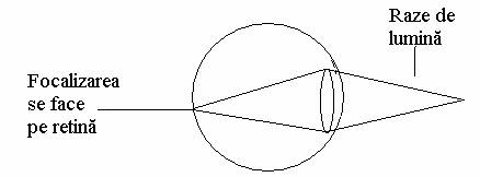 Cānd lumina vine de la un obiect si intra īn ochi, razele sunt reftactate de catre cornee si cristalin. Punctul īn care se īntālnesc razele se numeste focar. Daca se focalizeza pe retina, tot ce se vede este clar si neted. Cristalinul īsi schimba forma cānd ne uitam la un obiect de la diferite distante. Astfel, razele sunt reflectate si imaginea este īn continuare īn focar.