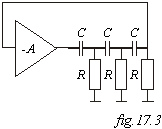 3. Schema de principiu a unui oscilator cu retea de defazare este desenata īn fig.3, īn care amplificatorul, de tip inversor, poate fi realizat cu tranzistoare.