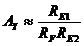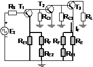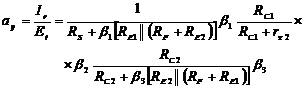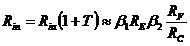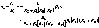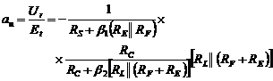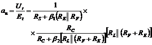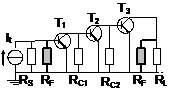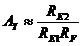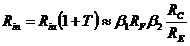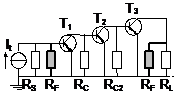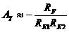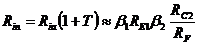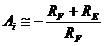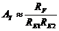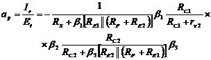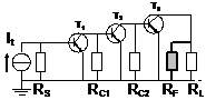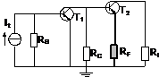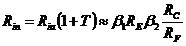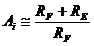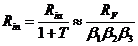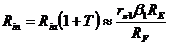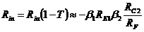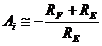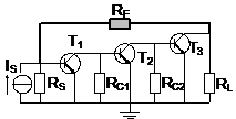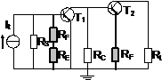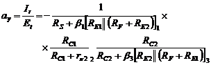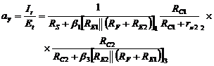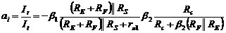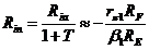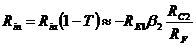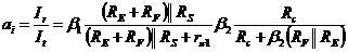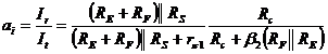 Circuitul din figura 4 prezinta un amplificator cu reactie de tipul paralel serie. Considerand ca transmisia pe bucla este mult mai mare ca unu (T>>1), amplificarea in curent AI este aproximativ: |