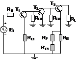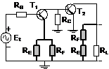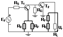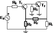 Circuitul din figura 2 prezinta un amplificator cu reactie de tipul serie serie. Circuitul ”f” atasat acestui circuit este prezentat in figura 2. |