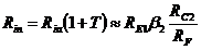 Circuitul din figura 1 prezinta un amplificator cu reactie de tipul paralel paralel. Considerand ca transmisia pe bucla este mult mai mare ca unu (T>>1), amplificarea transimpedanta Az este aproximativ: |