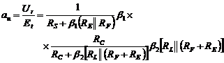 Circuitul din figura 1 prezinta un amplificator cu reactie de tipul paralel paralel. Circuitul ”a” atasat acestui circuit este prezentat in figura 5. Stiind ca transmisia pe bucla este T b b b rezistenta de intrare este aproximativ: |