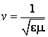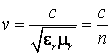 Viteza de propagare a undelor electromagnetice intr-un mediu oarecare se poate scrie sub forma: