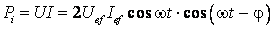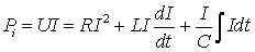 Pentru un circuit serie R-L-C obtinem, din formulele tensiunii, intensitatii curentului si puterii instantanee: