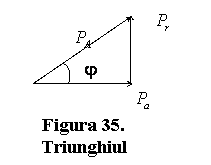 Din (5.144) si (5.146) obtinem relatia intre puterile aparenta, activa si reactiva (triunghiul puterilor, in fig.35):